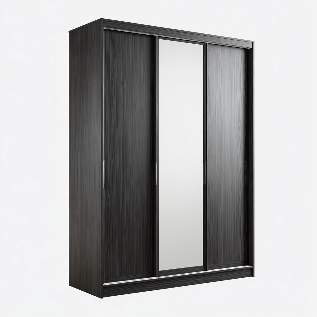 Armadio legno 168x62x202 cm - colore nero - per camera da letto - con specchio integrato - design moderno