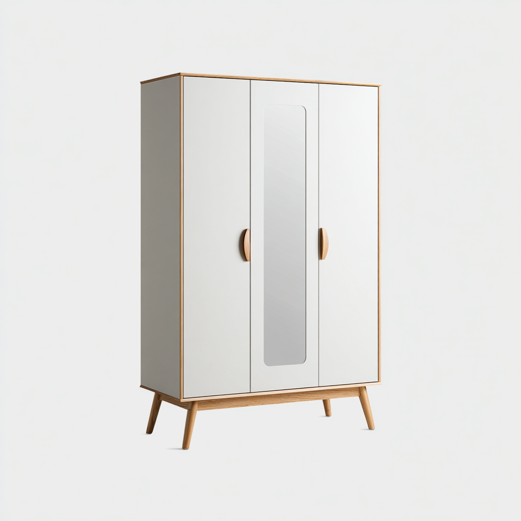 Armadio legno 118x53x186 cm - colore bianco - rovere - per camera da letto - con specchio integrato - design moderno