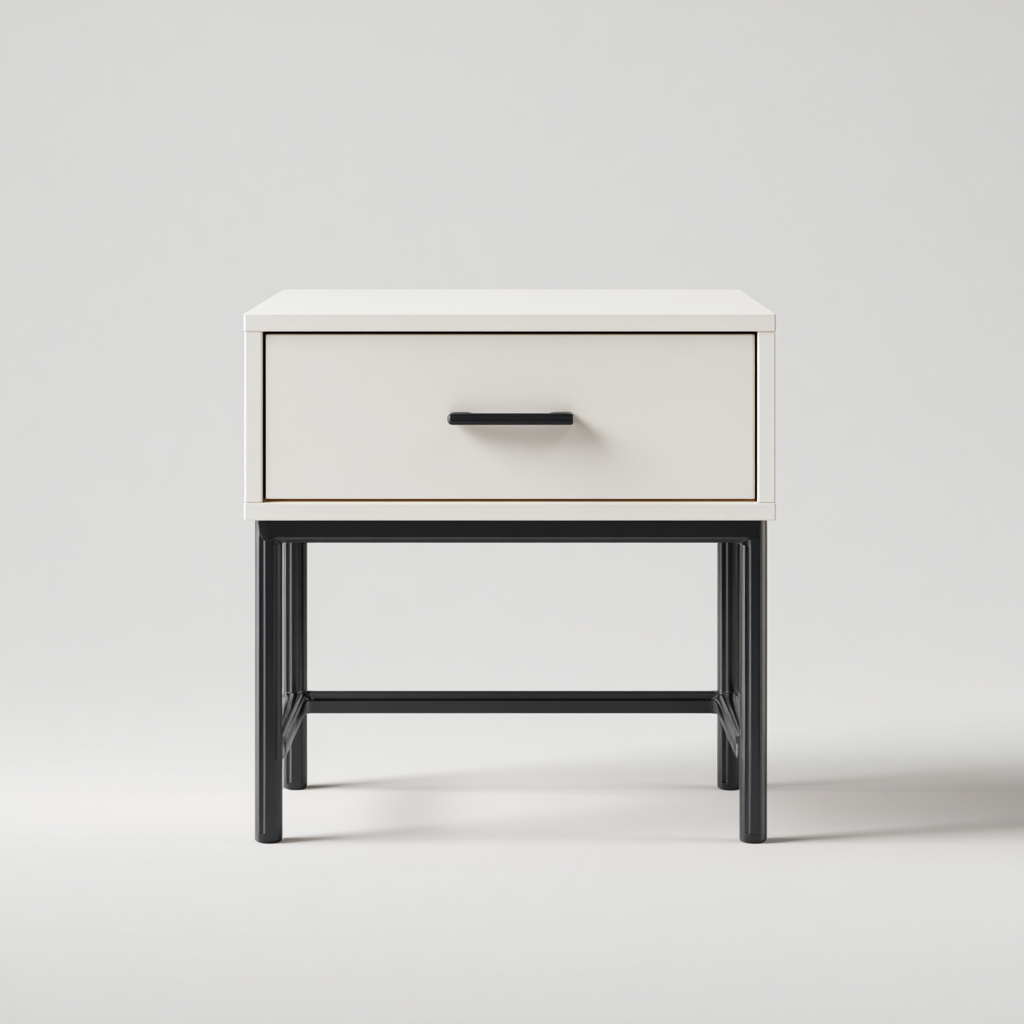 Comodino in legno e metallo 45x35x55 cm - bianco - per camera da letto - design moderno