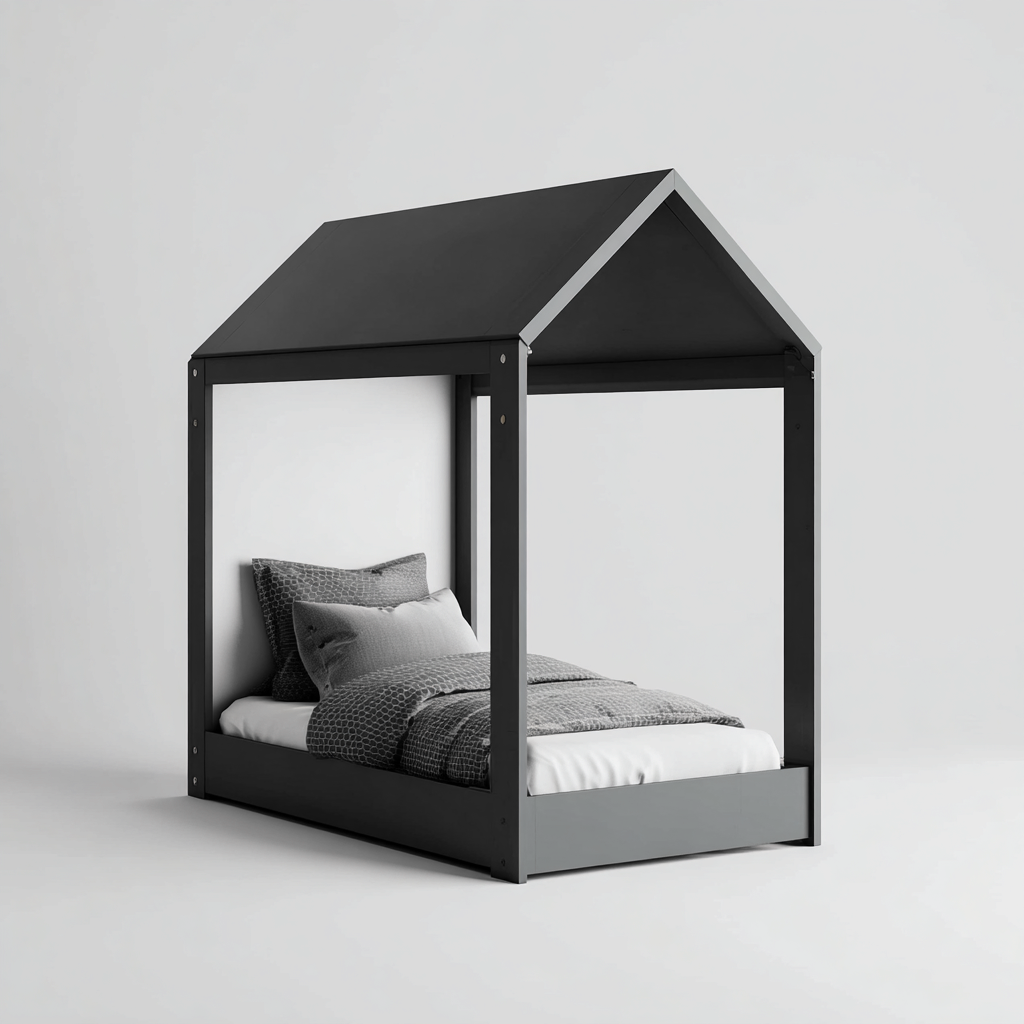 Letto per bambini - legno - 200x105x170 cm - grigio - adatto per cameretta - design a casetta