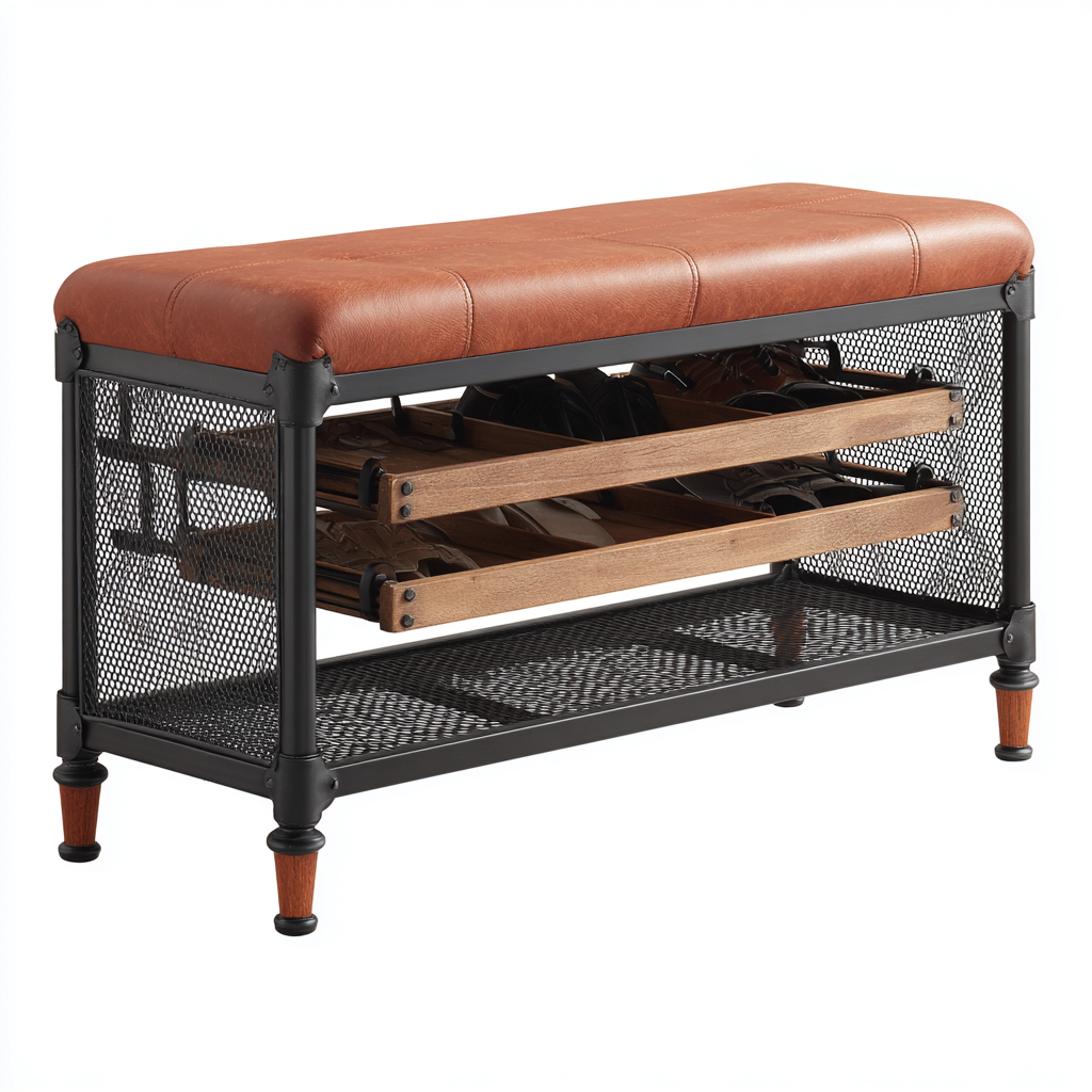Panca da ingresso - struttura in metallo con seduta imbottita - 90x35x50 cm - marrone - nero - adatta per ingresso - design industriale
