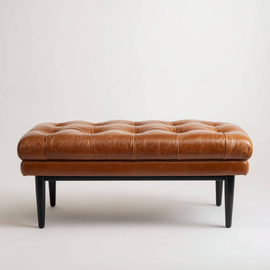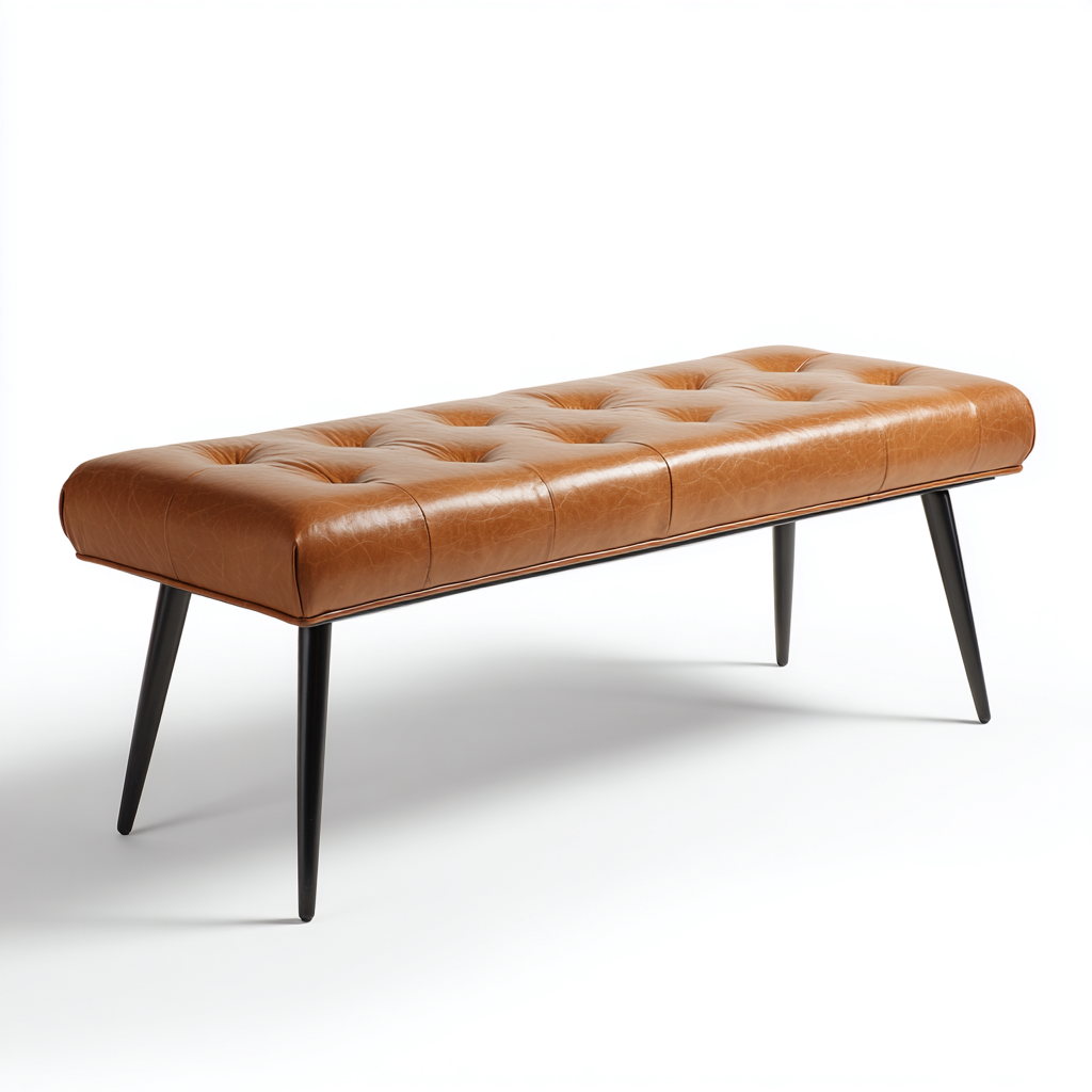 Panca da ingresso - seduta in finta pelle trapuntata con gambe nere - 105x45x45 cm - marrone - adatta per ingresso - design moderno