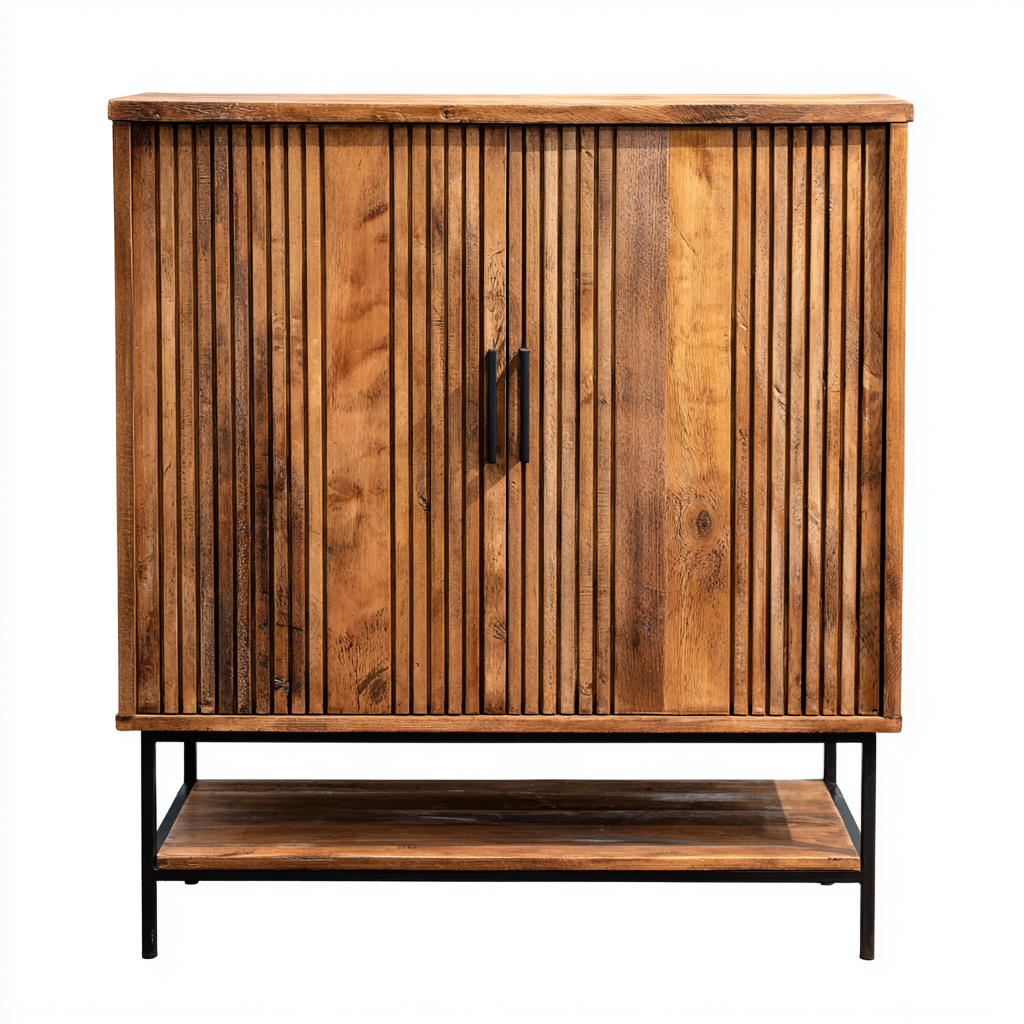 Scarpiera - struttura in legno massello con base in metallo - 80x35x100 cm - legno naturale - nero - adatta per ingresso - design con ante a doghe