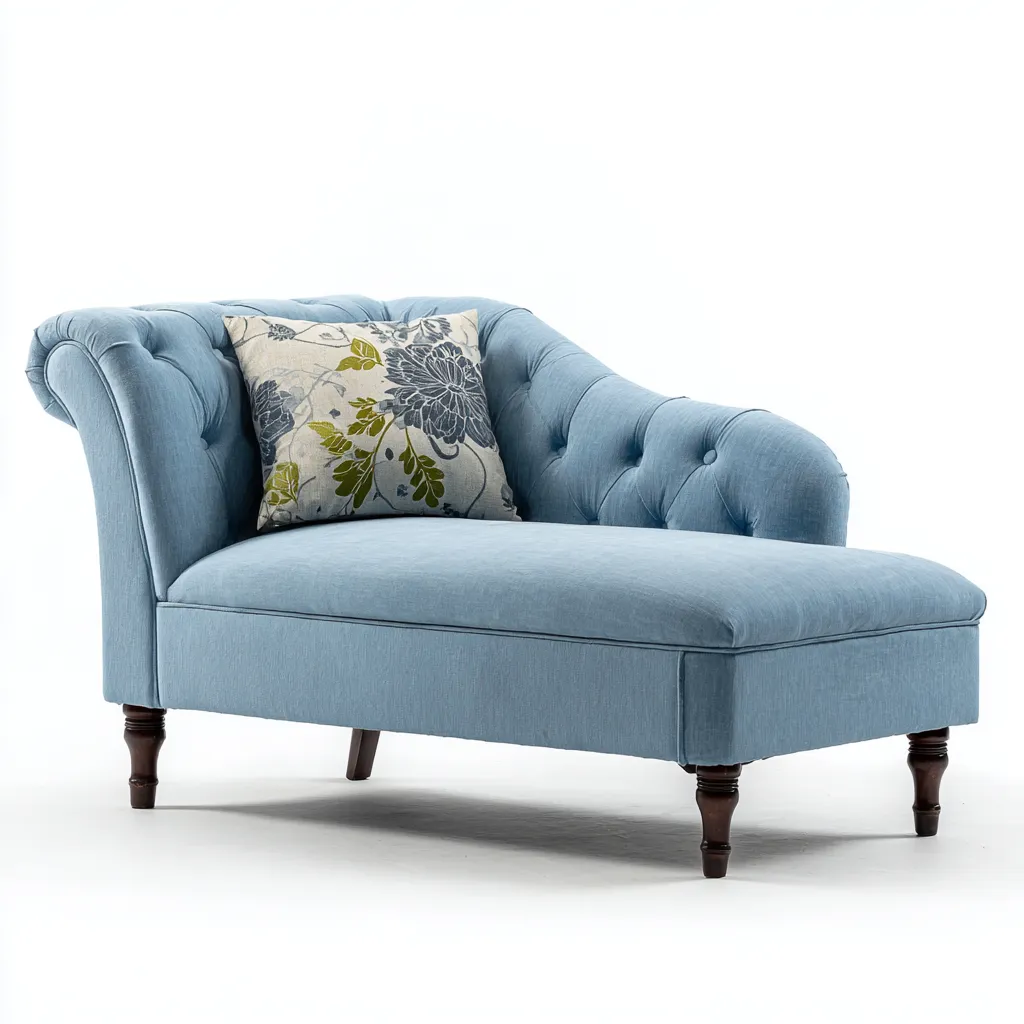 Questa chaise longue in stile classico è adatta per il soggiorno e offre una seduta confortevole grazie alla sua forma ergonomica. Il colore azzurro dona un tocco luminoso e delicato agli ambienti interni.