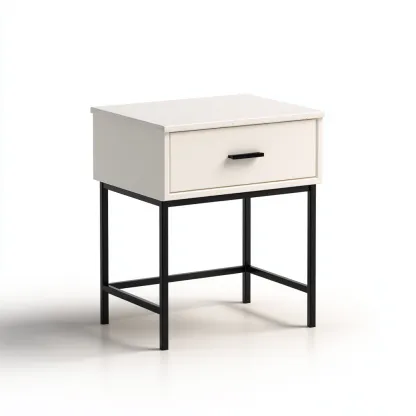 Comodino in legno e metallo 45x35x55 cm - bianco - per camera da letto - design moderno