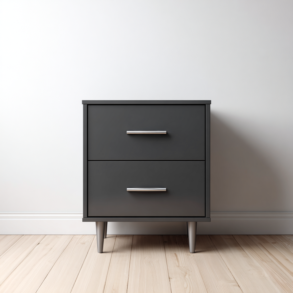 Questo comodino dal design moderno presenta una struttura compatta in colore grigio scuro, ideale per aggiungere funzionalità ed eleganza alla zona notte o agli spazi living. Le linee pulite valorizzano un'estetica contemporanea e versatile.