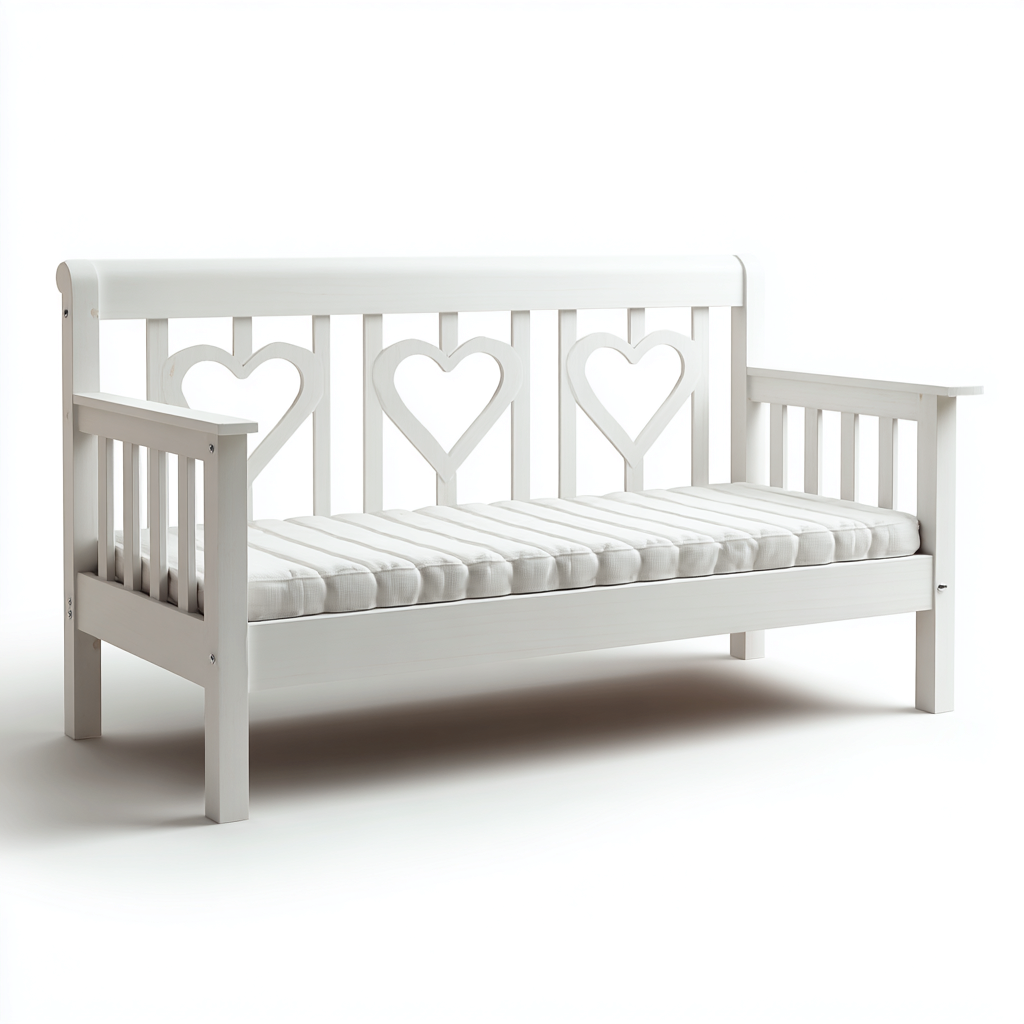 Questo divano letto in stile romantico combina linee pulite con un motivo a cuore che impreziosisce la struttura, rendendolo ideale per creare un ambiente accogliente e armonioso nella camera da letto.