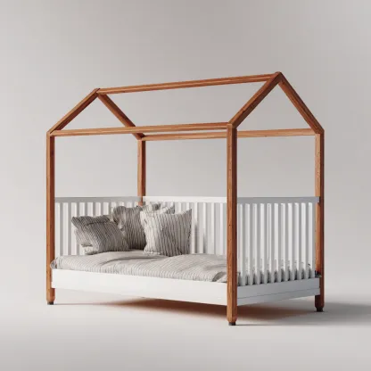 Letto per bambini in legno con struttura a casetta 198x96x165 cm - bianco - naturale - adatto alla cameretta dei bambini - design moderno