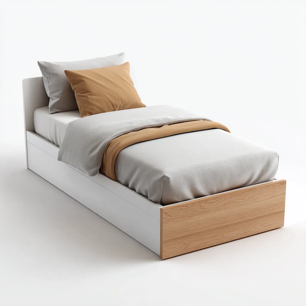 Questo letto singolo presenta un design moderno e lineare, ideale per arredare la camera da letto con uno stile pulito e funzionale. La struttura compatta permette di ottimizzare lo spazio senza rinunciare alla stabilità.