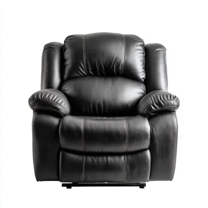 Questa poltrona reclinabile in pelle nera presenta una seduta ampia e imbottita, ideale per creare un angolo relax nel soggiorno. Il profilo morbido e la struttura avvolgente offrono un comfort quotidiano equilibrato.