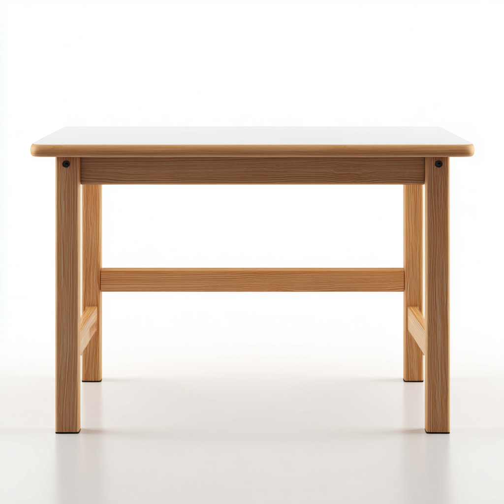 La scrivania è realizzata in legno con finitura naturale. La superficie liscia e resistente facilita la pulizia e garantisce una lunga durata nel tempo.